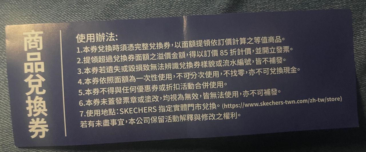 539F:推 boweiwu18: Skechers禮券面額5888賣3800 01/23 09:40