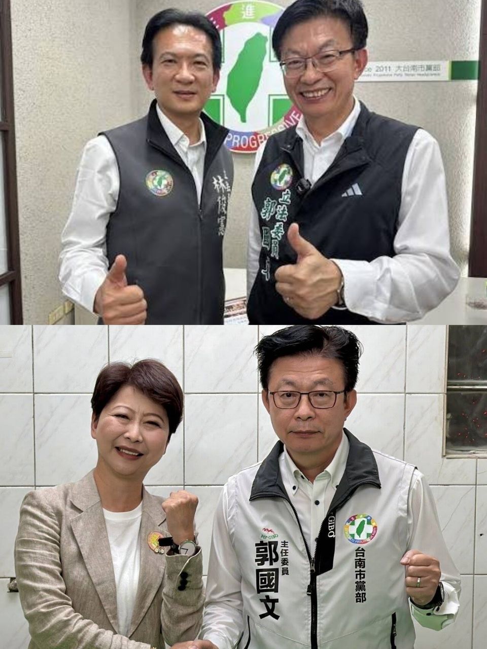 民進黨台南市長提名人陳亭妃與民進黨市黨部主委郭國文,在歷