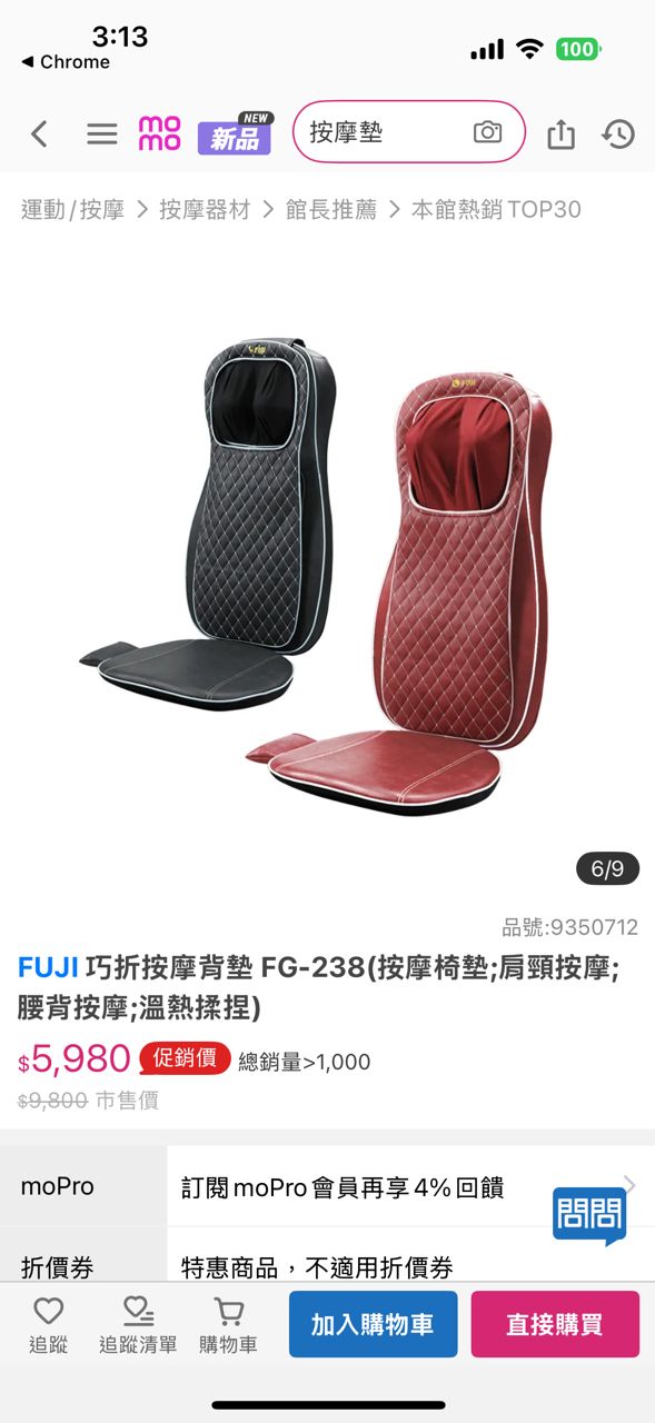 出售物品:FUJI 巧折行動按摩背墊-黑色