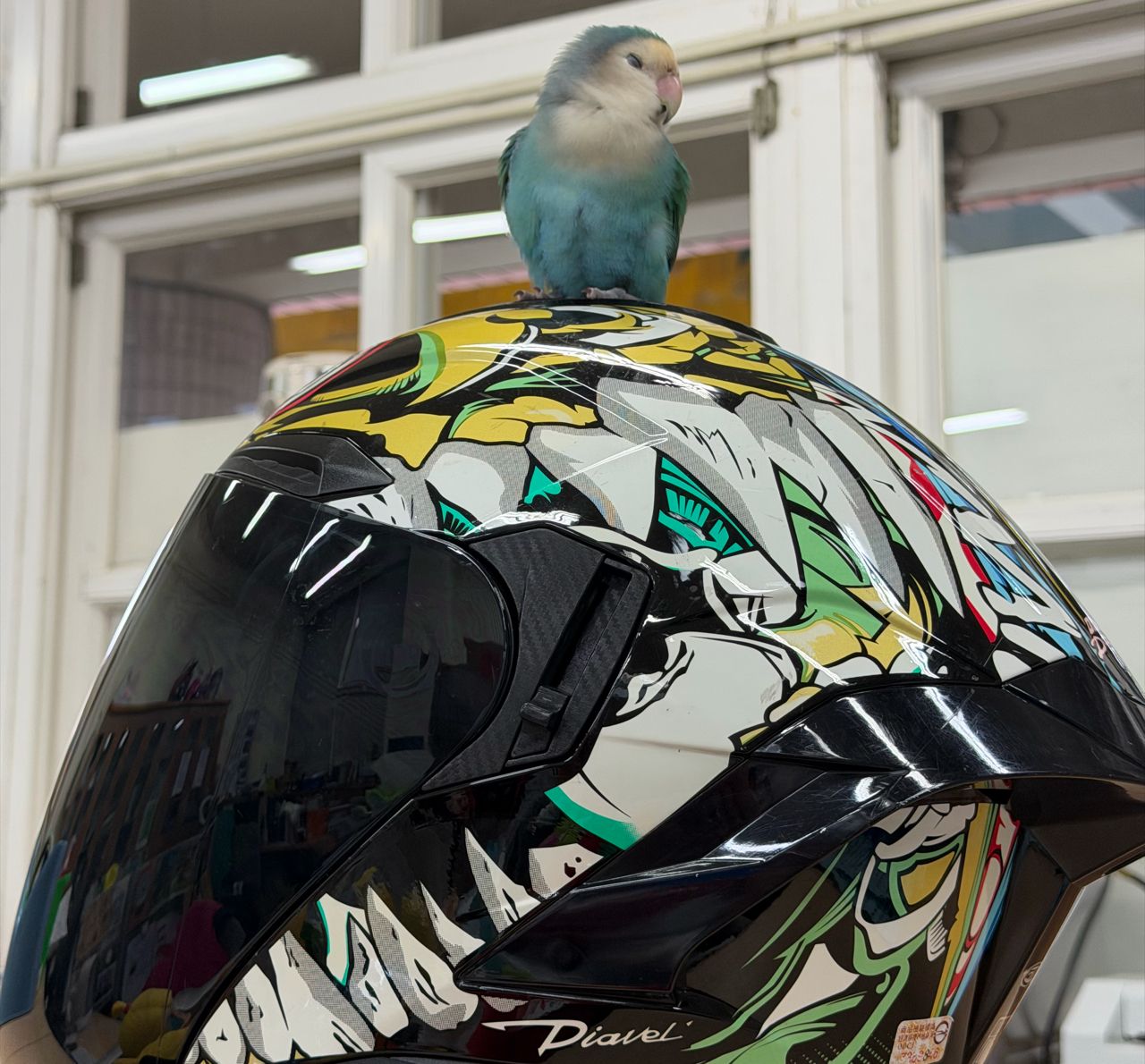在我安全帽上度估的鳥