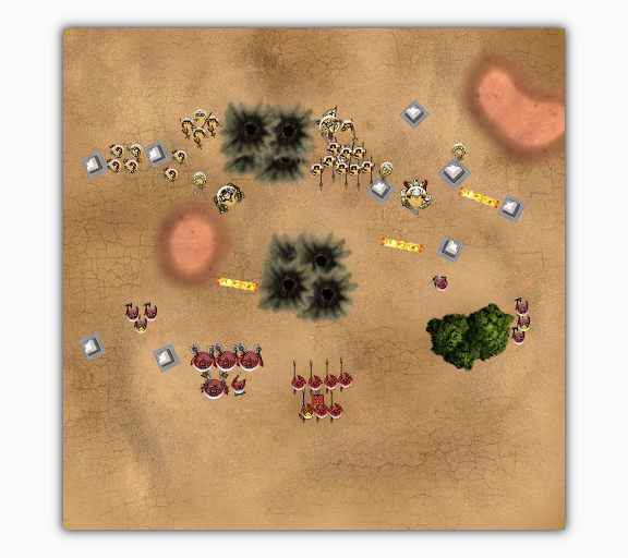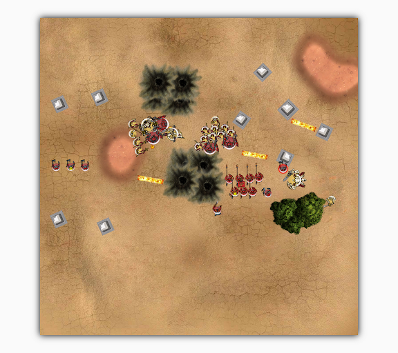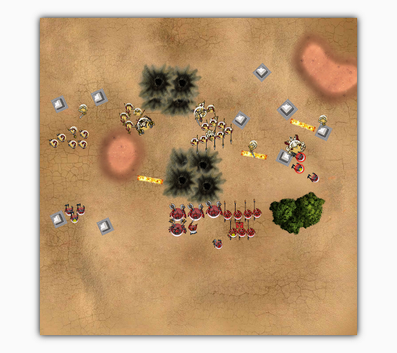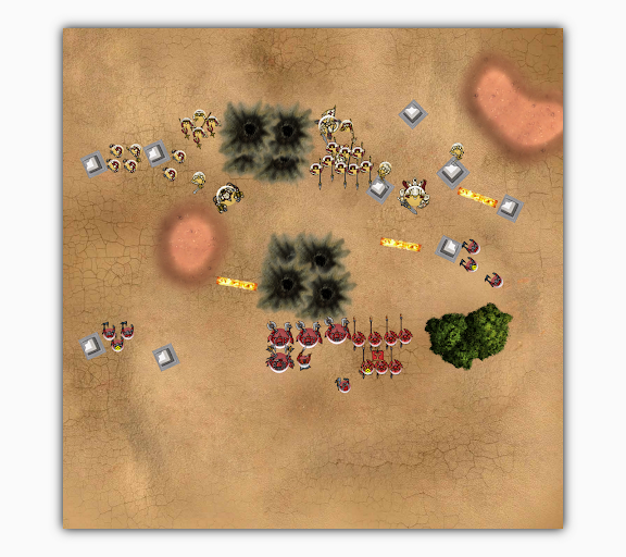 除了Pikeman移動並發動盾牆命令以外,所有模型全軍跑步找位,回合結束。