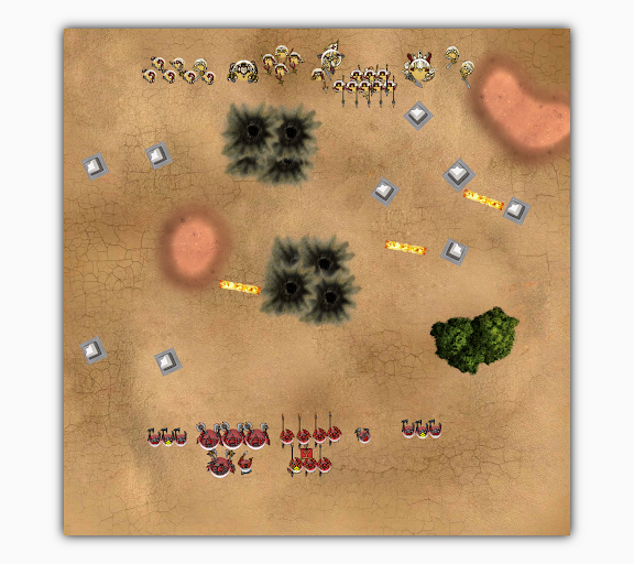 由Menoth方獲得優先權,Menoth方決定後手,Khador方先行部屬。
