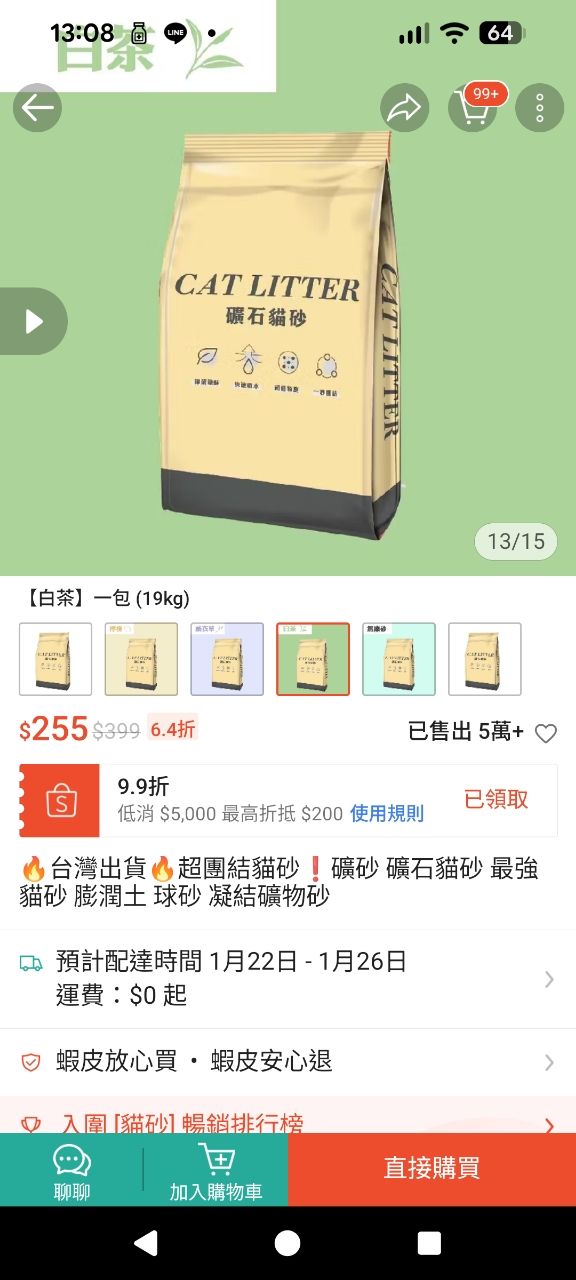2.蝦皮購買的貓砂 味道是白茶
