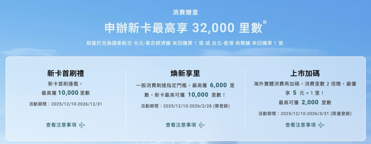 門檻2:消費累計達10萬,既有卡友再享6000里數,新卡友再享10000里數