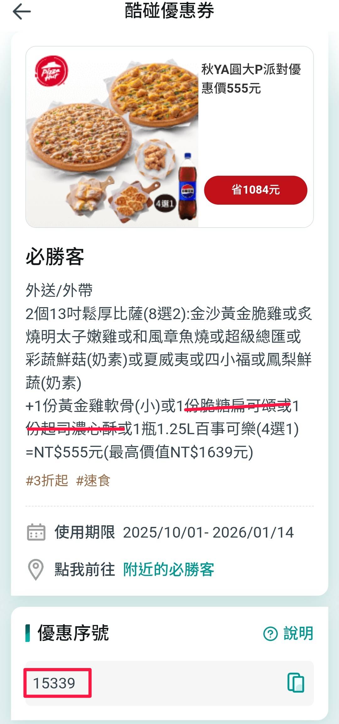 標題[情報]肯德基/必勝客 11月優惠券整理分享