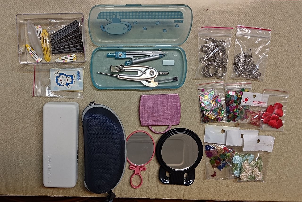 眼鏡盒、隨身鏡、圓規、髮夾、多拉A夢貼紙