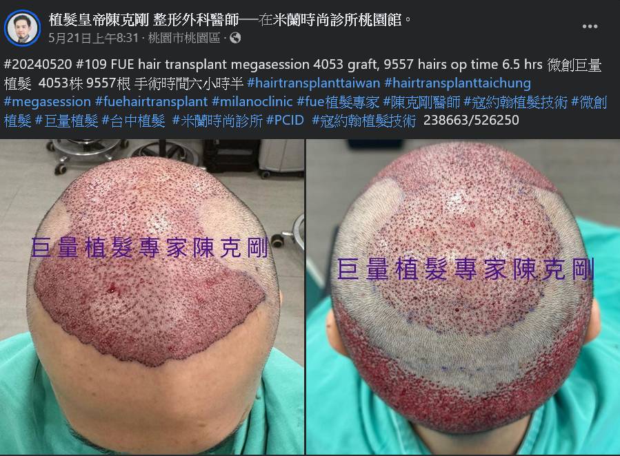 接著就是陳醫師的植髮案例非常之多也放上了網路分享
