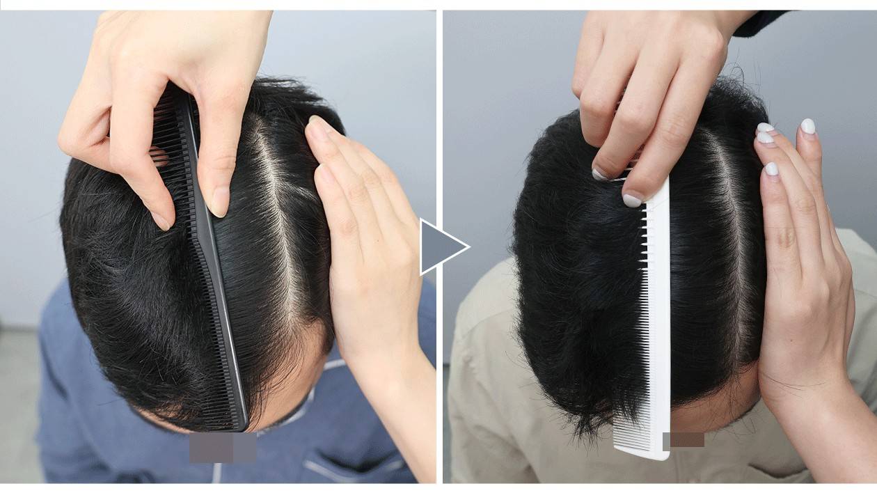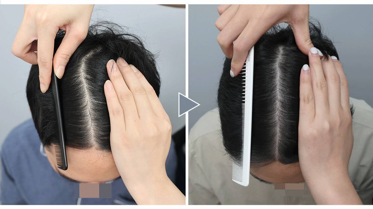 體髮量不斷地在進步,頭髮變厚了,頭髮梳開後的髮線間隙越來越小,在多娜回診的拍照