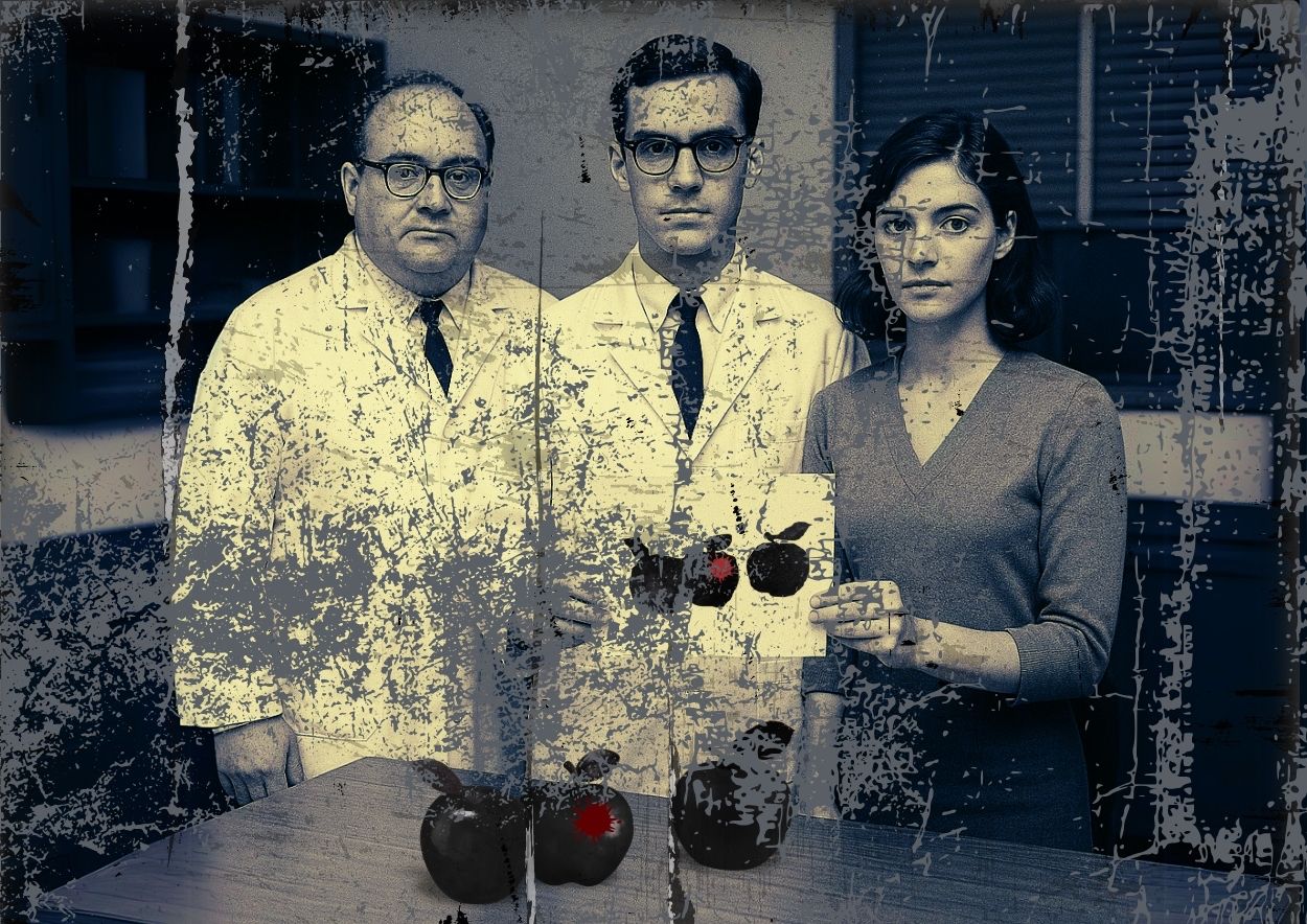 黑色的蘋果,其中一顆沾有血滴。