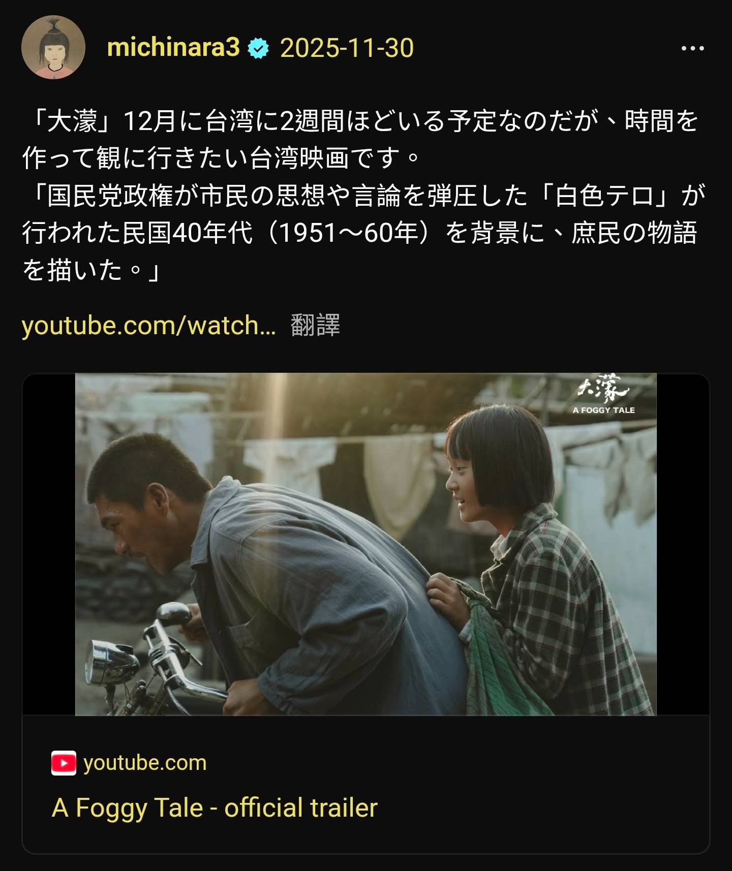 趣,果然來台後實現承諾跑去看了《大濛》。他在社群貼文上表示:「終於觀賞了《大濛
