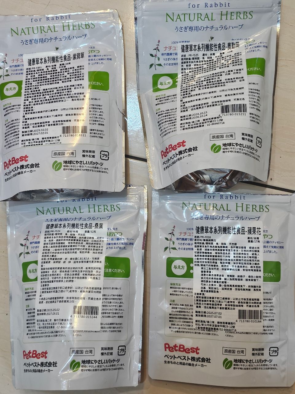 特別提醒:牧草+蒲公英的那包包裝比較薄,有被兔寶咬破洞,有另外用大夾鏈袋包起來