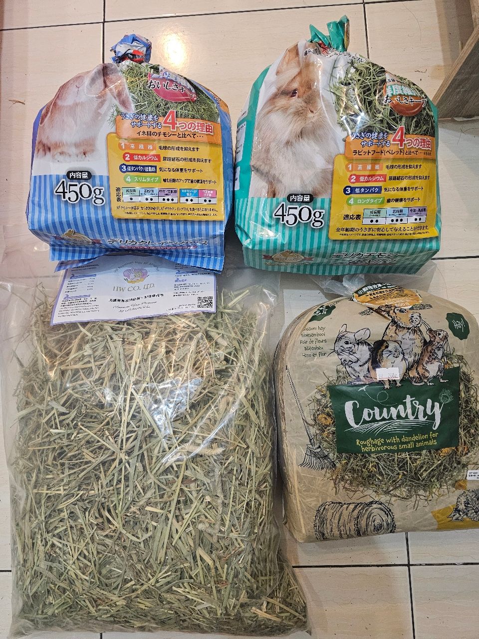 上面兩包分別是金牌的葛蘭牧草跟提摩西,四包都被兔寶打槍,故贈送給不挑食的兔寶。