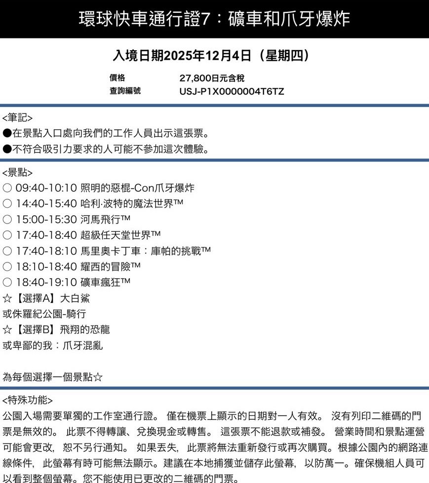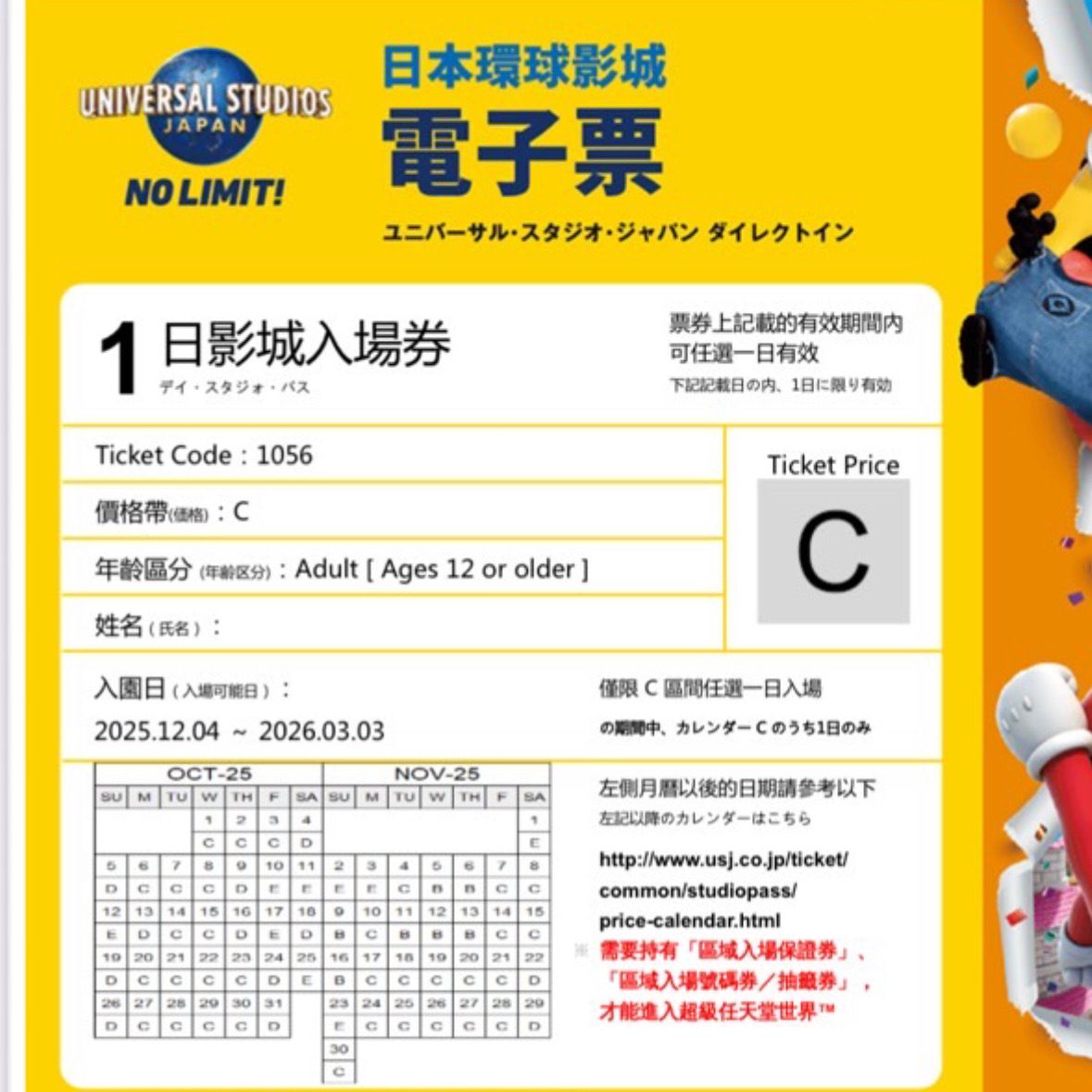 標題[交易] 降價 日本環球影城12/4快通 門票C